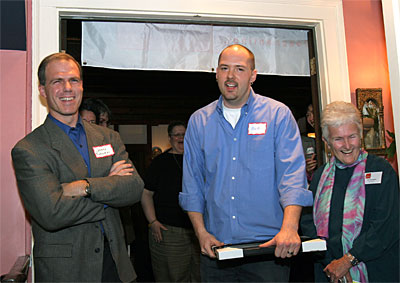 Bob Murch and Pat Gozemba present Rep. John Keenan with a photograph of the April 27th meeting with House Speaker Sal DiMasi. Photo by Marilyn Humphries