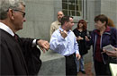 We began at 5:30 am on the steps of Salem's City Hall to apply for our marriage licence, trekked over to Salem's Probate Court to get a three day waiver, then headed back to city hall to get our license, and finally got married. Below are some pictures we hope demonstrate our commitment to each other as well allow you to see that we are only asking for what everyone wants...happiness.